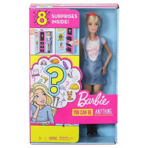 Lalki Barbie z linii Kariera-niespodzianka gwarantują wielkie emocje podczas odkrywania, co kryje pudełko – do znalezienia jest osiem różnych elementów! Każda lalka ma dwa profesjonalne stroje, na które składają się ubranka oraz akcesoria pasujące do danego zawodu. Na które z nich trafisz? Otwórz opakowanie, by odkryć, jakie atrakcje są w środku.