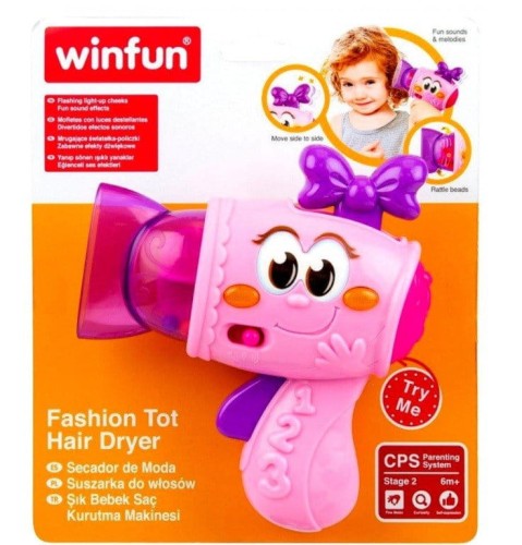 Naciskając przycisk uruchomimy dźwięk suszarki, grzechotki oraz zabawne dźwięki.