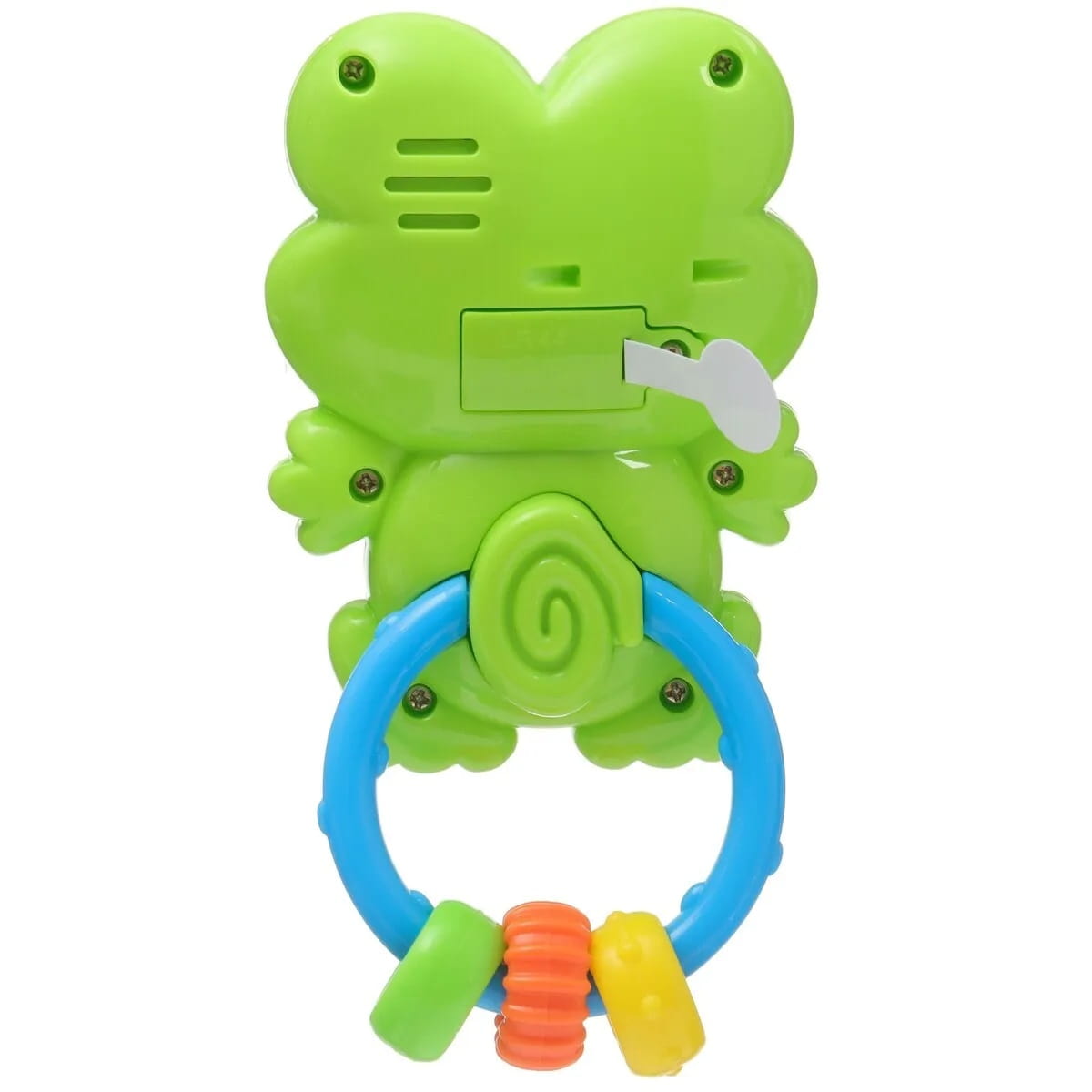 ➡️Po poruszeniu kółkiem grzechotka gra melodyjki, wydaje odgłosy np. śmiech dziecka oraz świeci światełko.