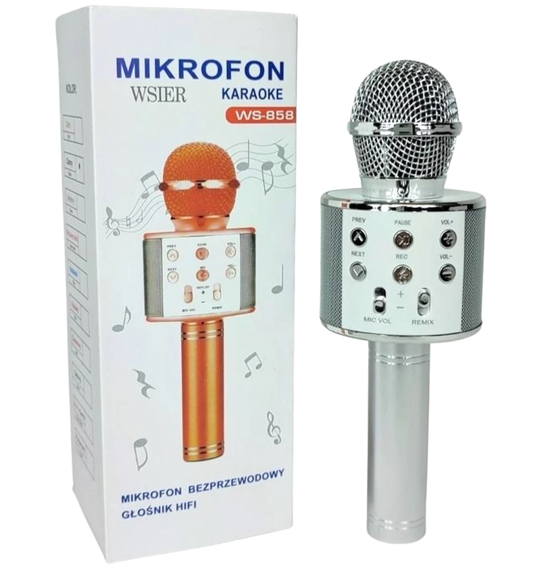 MIKROFON BEZPRZEWODOWY W&K SREBRNY SILVER JYWK-369-2 KARAOKE