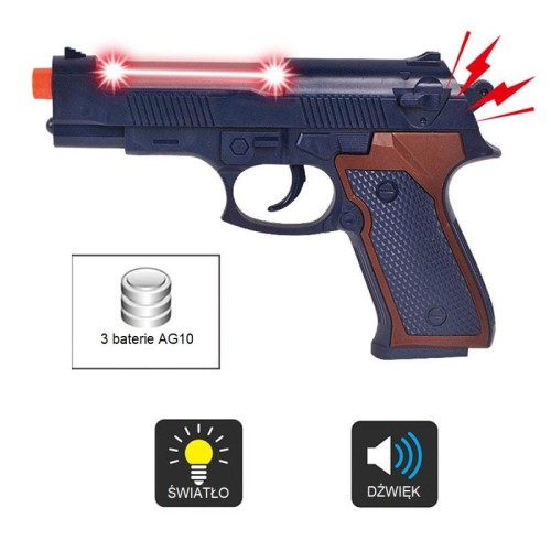 ✔️Pistolet wydaje dźwięki strzelania i świeci.