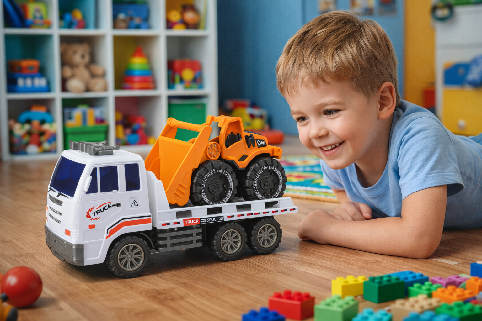 AUTO LAWETA CIĘŻARÓWKA ZE SPYCHACZEM 25CM ZESTAW