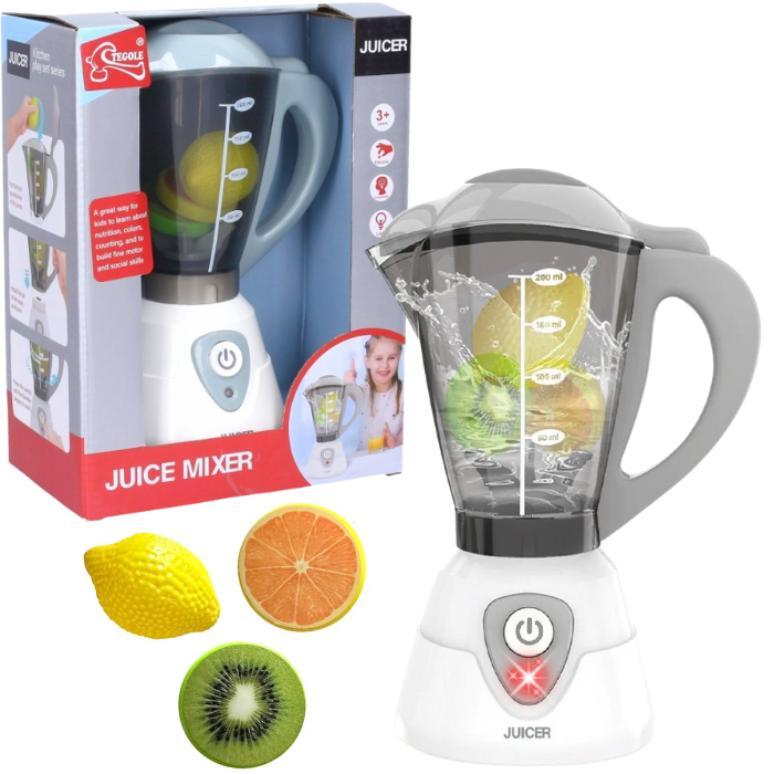 BLENDER MIKSER ROBOT NA BATERIE ZE ŚWIATŁEM AGD + OWOCE ZESTAW KUCHENNY
