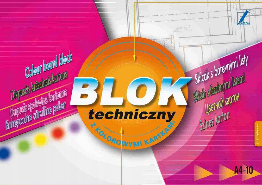 BLOK TECHNICZNY KOLOROWY A4 10 KARTEK – KRESKA