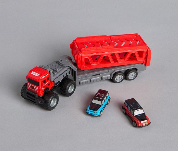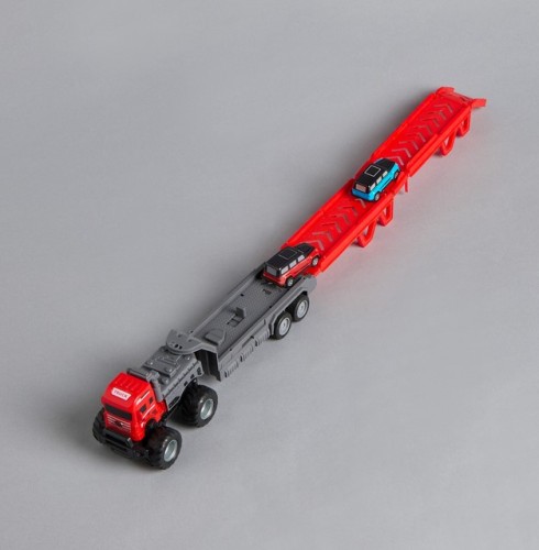 Duża ciężarówka z przyczepą typu laweta marki Dromader to idealna zabawka dla dzieci, które uwielbiają pojazdy transportowe i zabawę w przewożenie aut. Zestaw zawiera 2 samochody, dzięki czemu dziecko może od razu rozpocząć kreatywną i pełną wyobraźni zabawę.