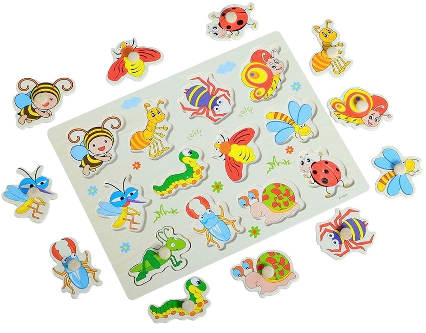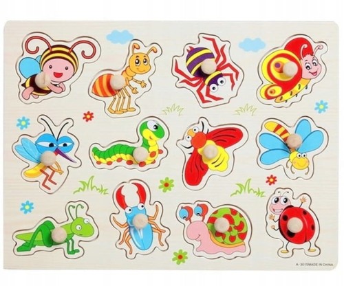 EDUKACYJNE DREWNIANE PUZZLE UKŁADANKA OWADY MOTYL