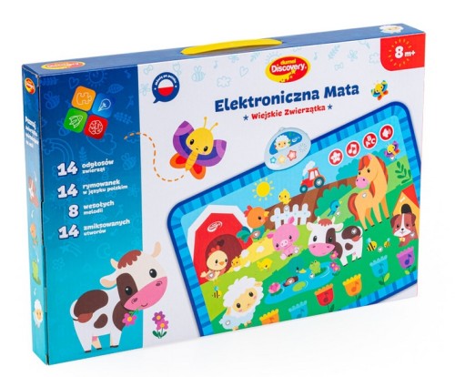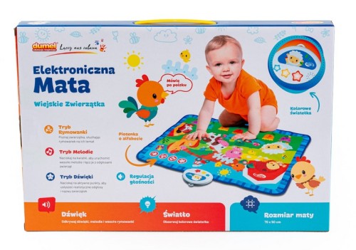 Kolorowa mata wypełniona jest po brzegi zwierzątkami! Sprawdź jaki odgłos wydaje każde z nich, posłuchaj wesołych rymowanek w języku polskim i baw się wspaniale przy dźwiękach melodii! Mata wyposażona została także w kolorowe światełka, możliwość łączenia melodii z odgłosami zwierzątek oraz piosenkę o alfabecie. Funkcja regulacji głośności pozwoli dostosować zabawkę do indywidualnych potrzeb, aby można było z niej korzystać w dowolnym miejscu.