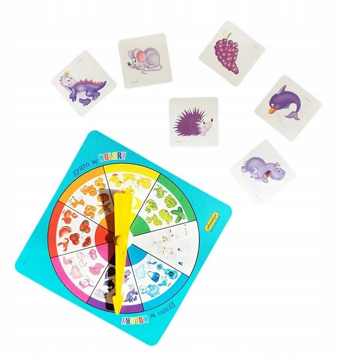 - Koło kolorów z wirującą wskazówką – element, który dodaje dynamiki i emocji do zabawy.