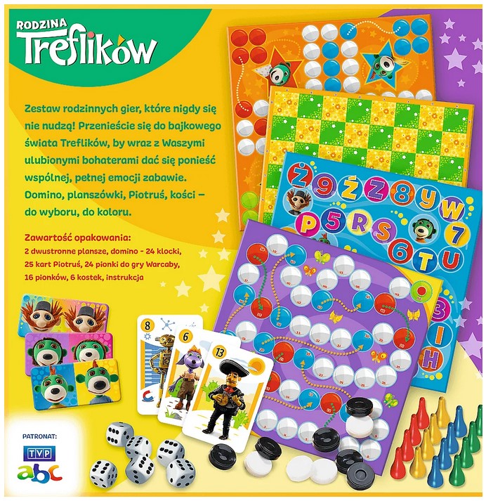 Kalejdoskop 25 gier z serii Rodzina Treflików to uwielbiany przez dzieci i rodziców zestaw klasycznych gier! Zawartość tej wyjątkowej edycji została przygotowana z myślą o wspólnych chwilach, spędzanych w rodzinnym gronie