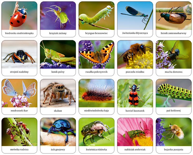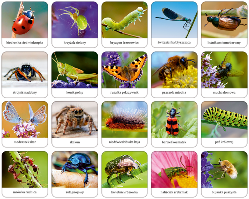 Gra pamięciowa Owady i Pająki Polski to edukacyjna zabawa, która rozwija pamięć i koncentrację, jednocześnie przybliżając dzieciom fascynujący świat polskich owadów i pająków. Zawiera 40 tafelków (20 par) z wizerunkami różnych gatunków, takich jak biedronka, ważka, żuk czy mucha. Celem gry jest odnalezienie par identycznych kart, co wspiera rozwój spostrzegawczości i umiejętności zapamiętywania.