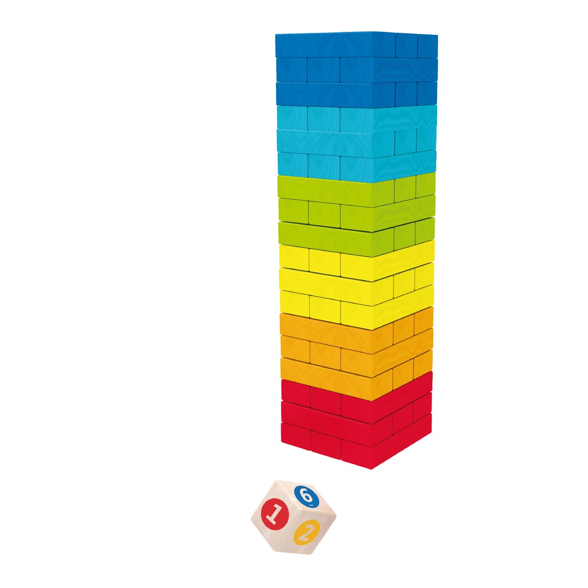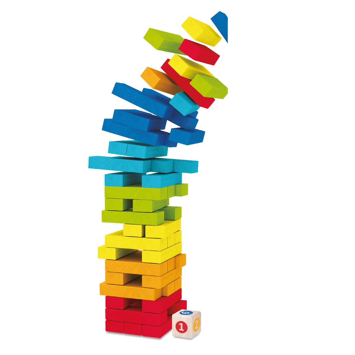 Rzuć kostką. Wyjmij element takiego koloru, jaki wyrzuciłeś. Połóż klocek na górze i buduj wieżę. Nie pozwól wieży rozpaść się!