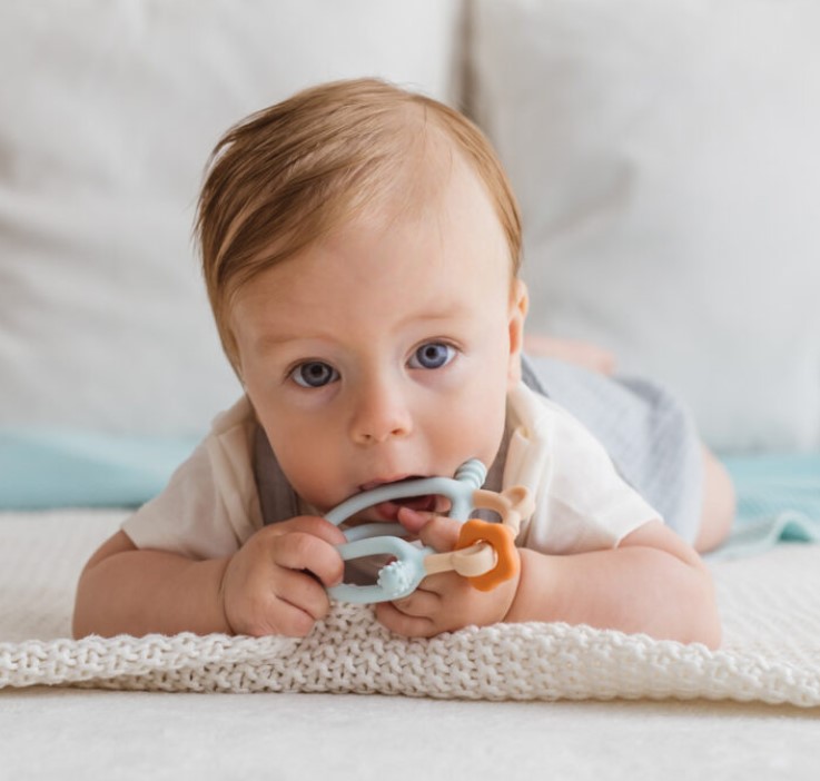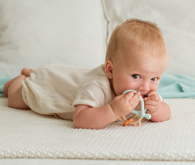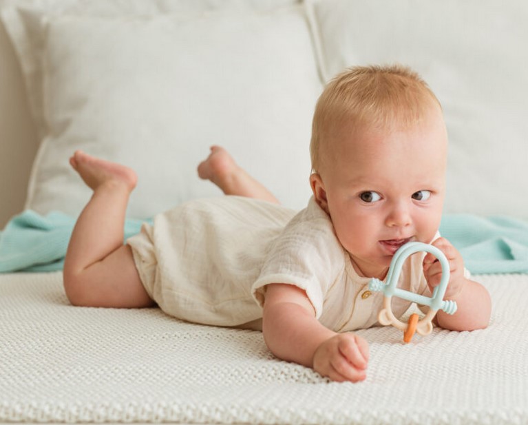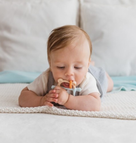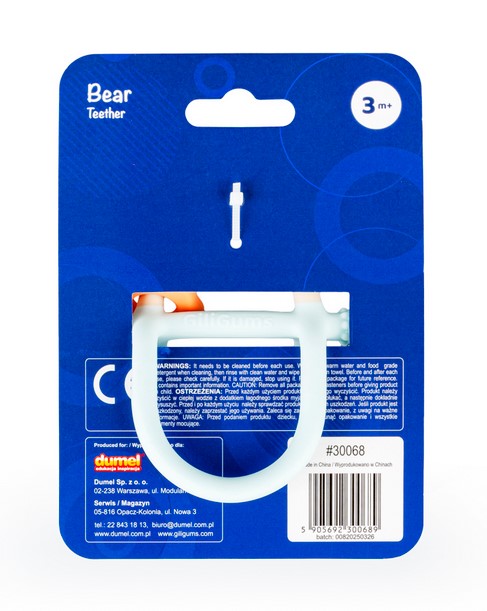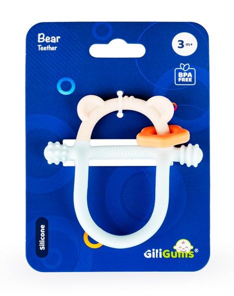 Z pastelowym misiem ząbkowanie to żadne wyzwanie! Gryzaczek posiada wypustki, które podczas gryzienia będą delikatnie masować obolałe dziąsła malucha. Kształt gryzaczka został zaprojektowany z myślą o najmłodszych. Znajdziemy tu miejsce na rączkę dzidziusia oraz poprzeczny element, za który bobas może chwytać zabawkę. Gryzak wykonany został z silikonu, dzięki czemu bez trudu go wyczyścisz.