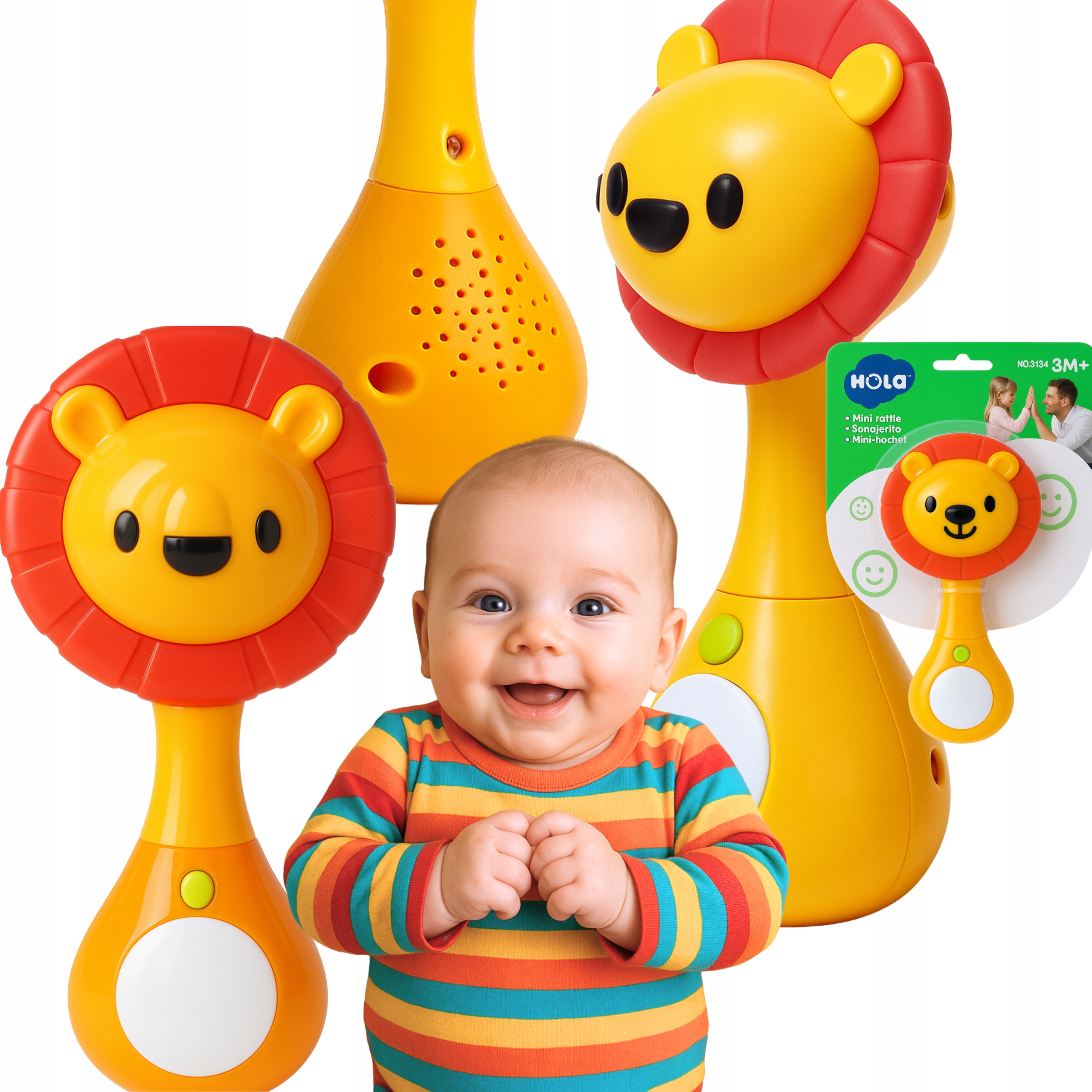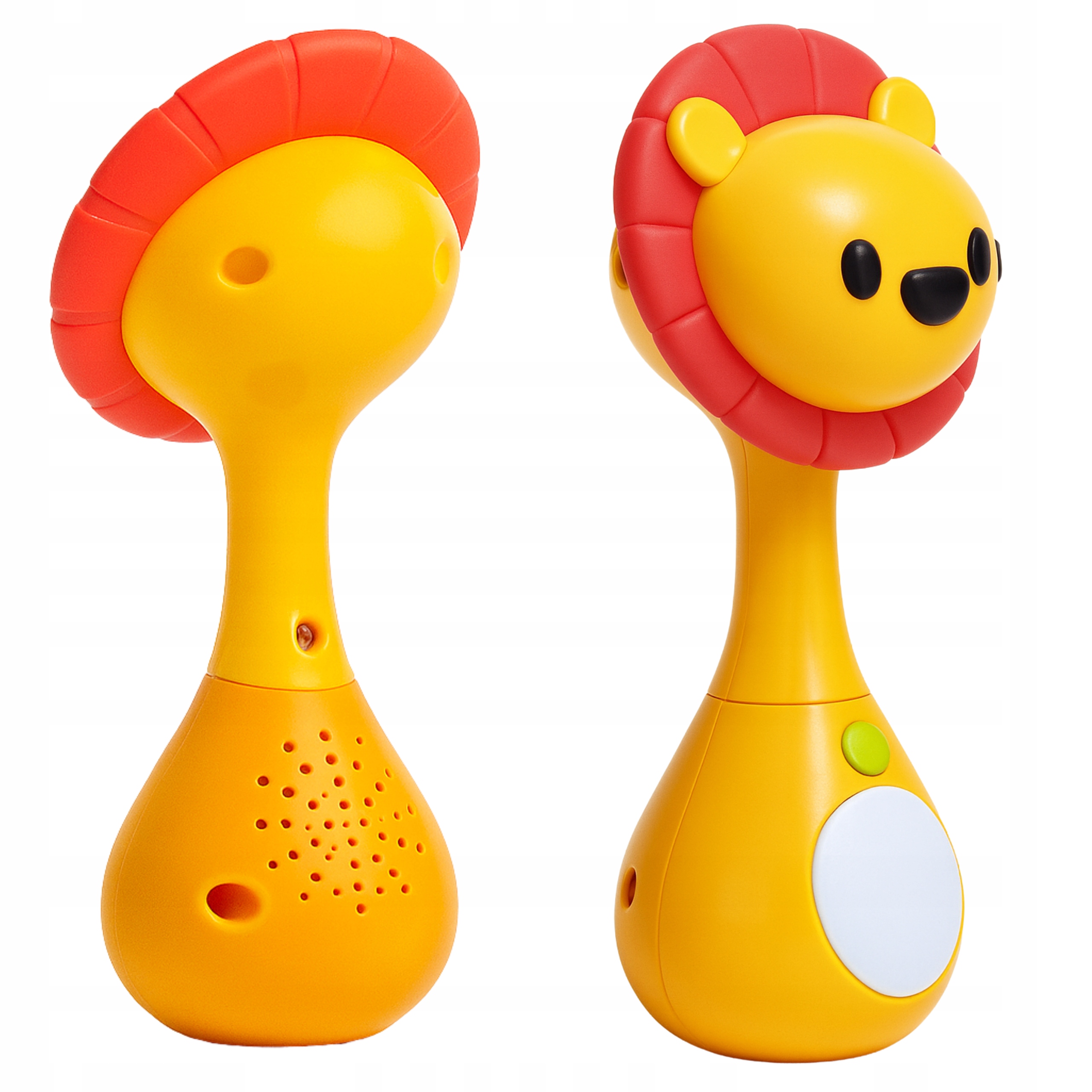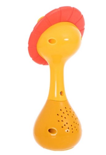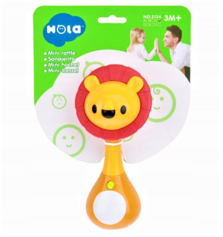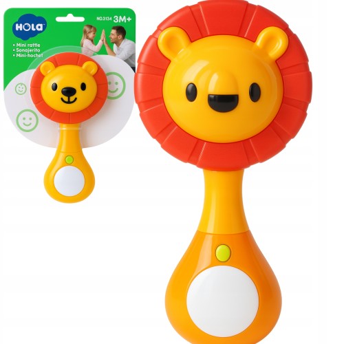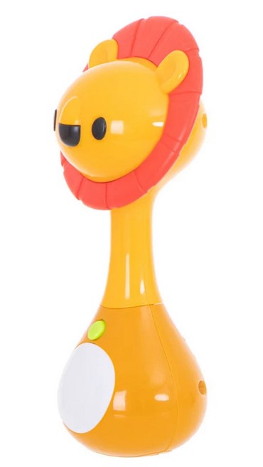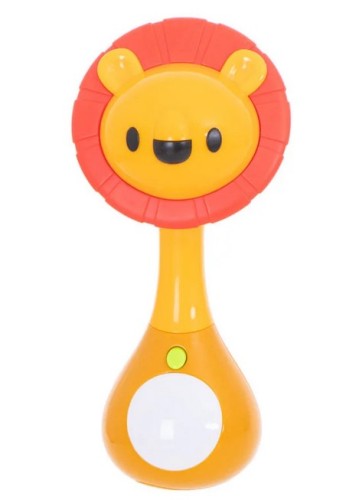 Interaktywna grzechotka w kształcie lwa oferuje trzy tryby zabawy: melodie, dźwięki natury oraz efekty świetlne. Miękka silikonowa grzywa pełni funkcję gryzaka, przynosząc ulgę podczas ząbkowania. Zabawka wspiera rozwój zmysłów i koordynacji malucha.