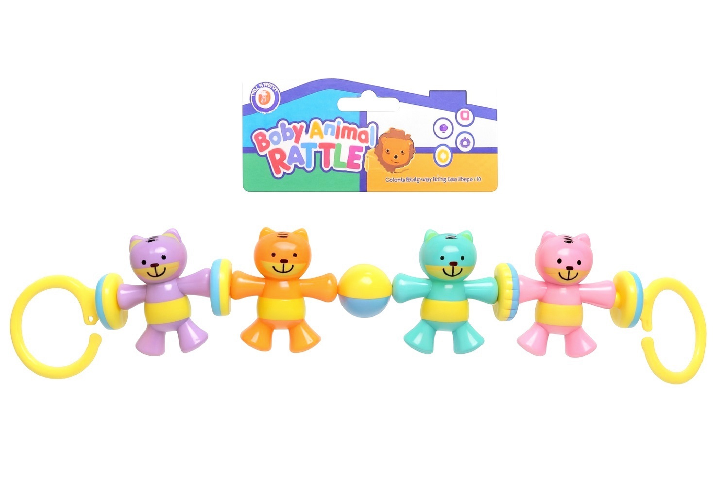 - Grzechotka posiada kolorowe elementy