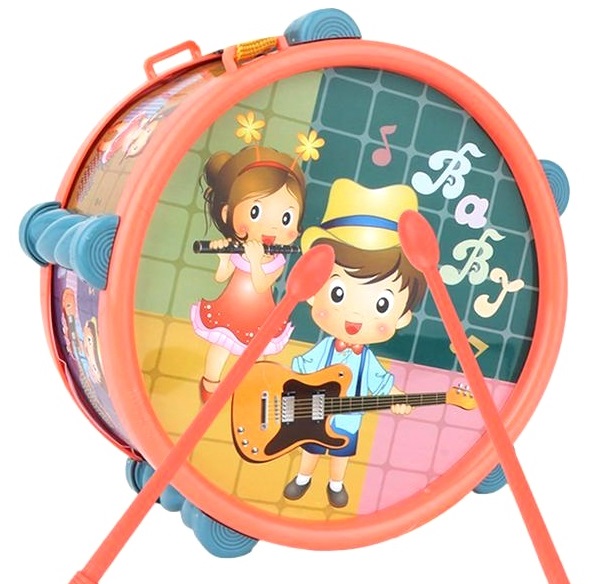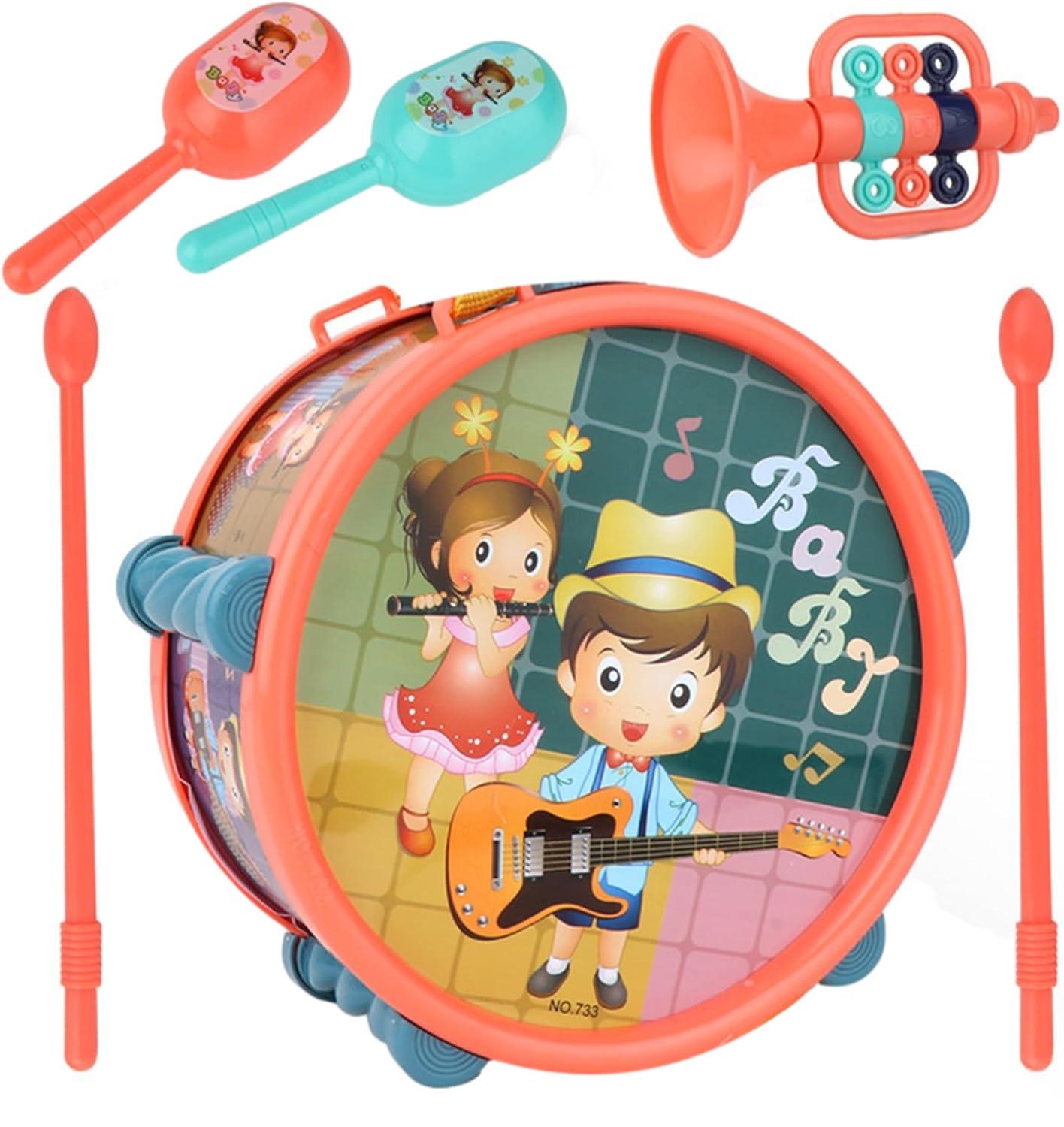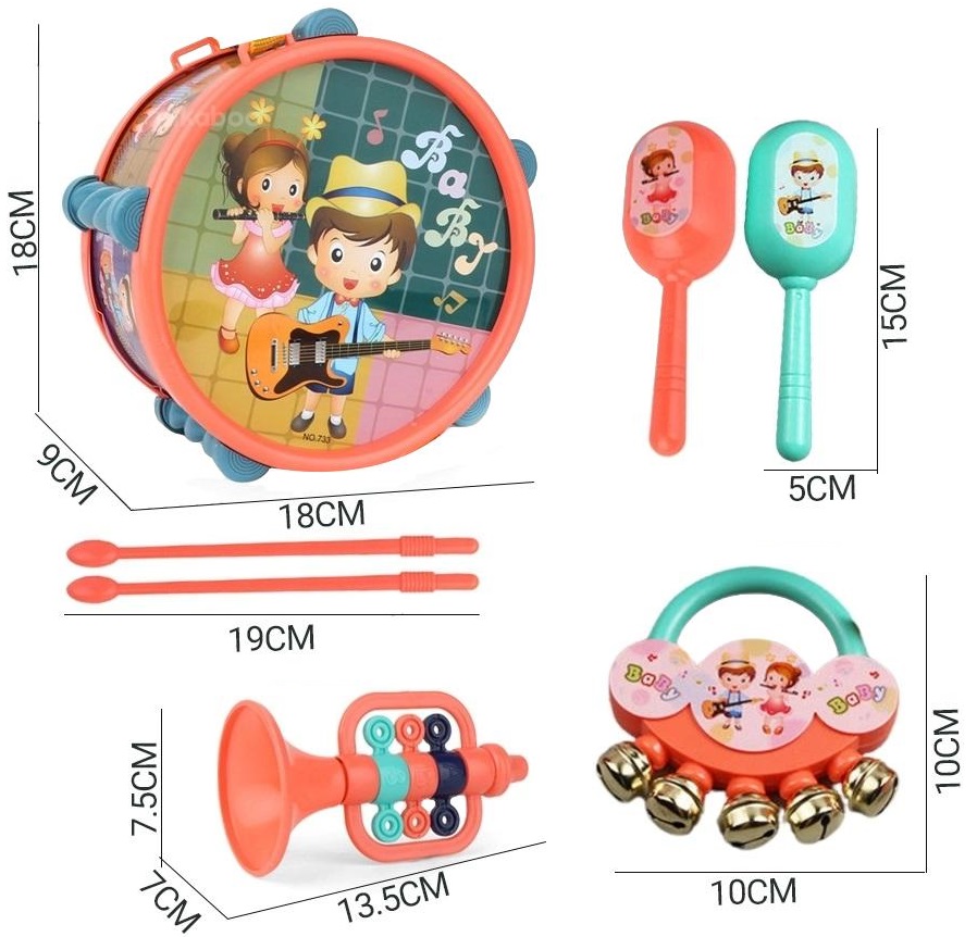 INSTRUMENTY MUZYCZNE KOLOROWE SENSORYCZNE MALUCHA BĘBENEK GRZECHOTKI TRĄBKA
