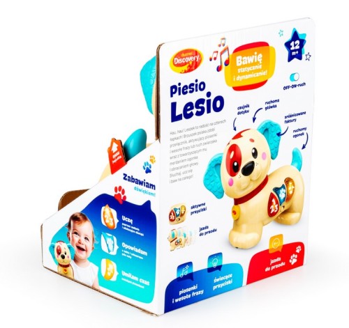 Rozbrykany piesek czeka na wspólną zabawę! Lesio to aktywizujący słodziak, który zabawi najmłodszych piosenkami i frazami w języku polskim oraz jazdą do przodu.