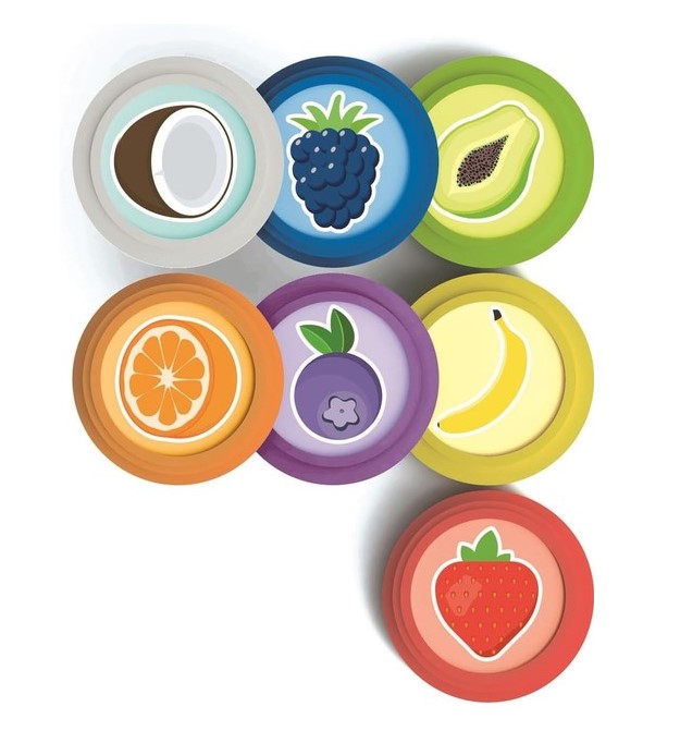 Nauka owoców i kolorów: Wstawiając żetony do dziobka tukana, dzieci uczą się nazw i kolorów owoców. Dziób tukana świeci się w zależności od koloru owocu, ułatwiając rozpoznawanie i zapamiętywanie kolorów