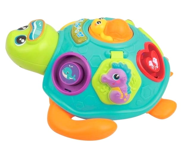 Ten uroczy żółw to sorter kształtów, który pomaga maluchom rozwijać zdolności motoryczne oraz umiejętność rozpoznawania kształtów i kolorów. W momencie dopasowania kształtów, żółw nagradza dziecko światłem i melodyjnymi piosenkami oraz wierszykami w języku polskim i angielskim.