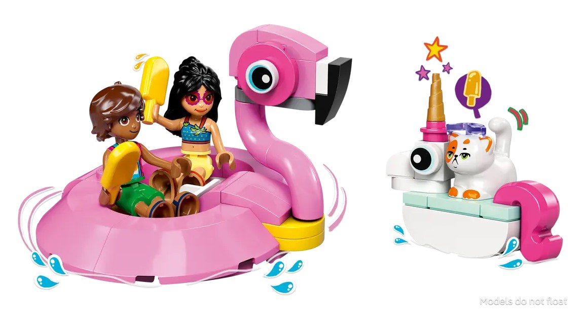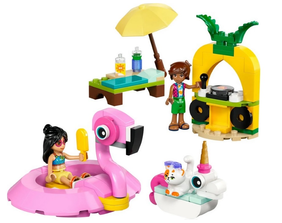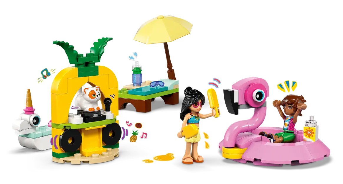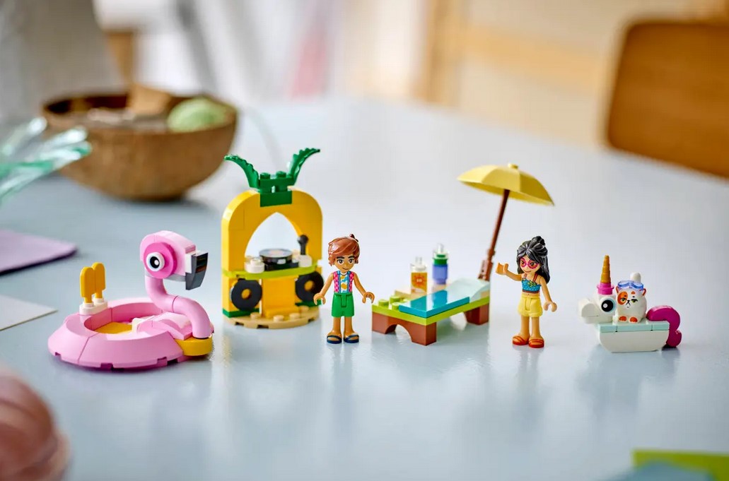 Zestaw konstrukcyjny LEGO® Friends Impreza na basenie z jednorożcem i flamingiem zapewnia mnóstwo okazji do kreatywnej zabawy i opowiadania historii. Dzieci w wieku od 5 lat będą zachwycone szczegółami: dwoma materacami do zbudowania, akcesoriami basenowymi, dwiema minilaleczkami i figurką kota.