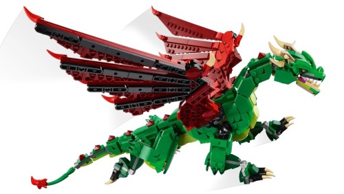 - Trzy średniowieczne stworzenia w jednym pudełku — zestaw LEGO® Creator 3 w 1 Średniowieczny smok umożliwia dziewięciolatkom i starszym dzieciom zbudowanie i przebudowanie trzech różnych figurek z tych samych klocków