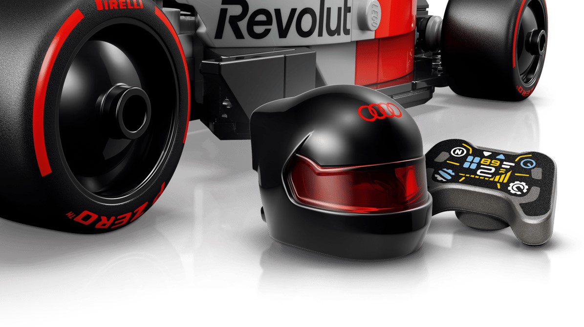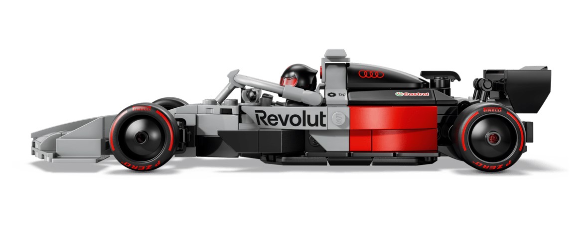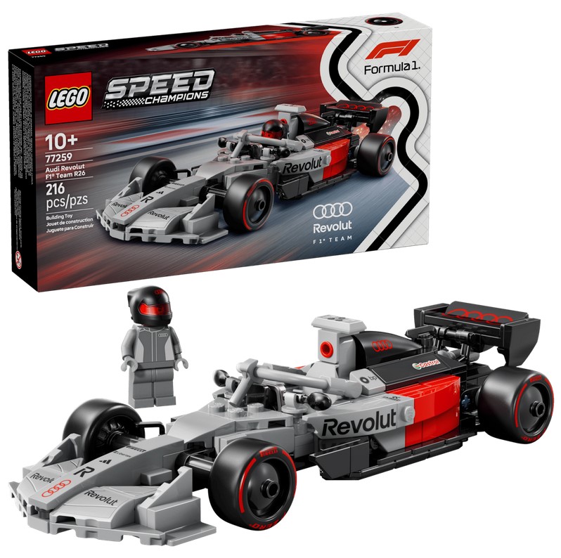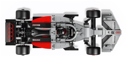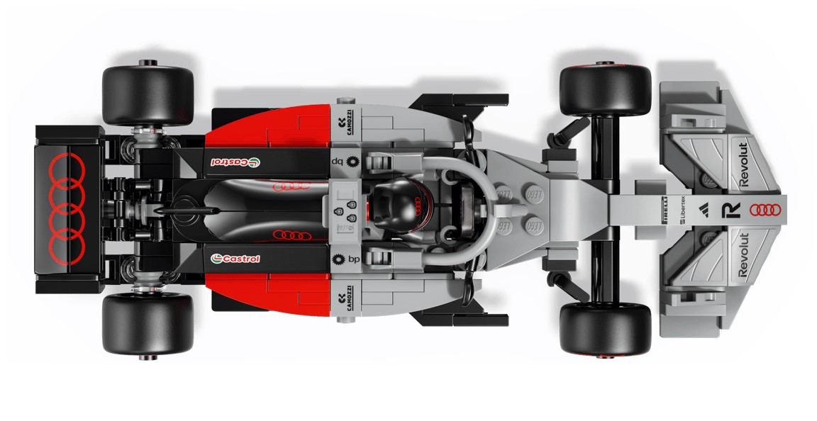 Bolid Audi Revolut F1 Team R26 ma kokpit, tylne skrzydło, autentyczne logotypy sponsorów, przednie zawieszenie kół oraz opony z nadrukiem "Pirelli". Zabawkowy pojazd jest również wyposażony w minifigurkę w stroju Audi Revolut F1 Team oraz kasku. Można ją umieścić w kokpicie i rozgrywać wyścigi.