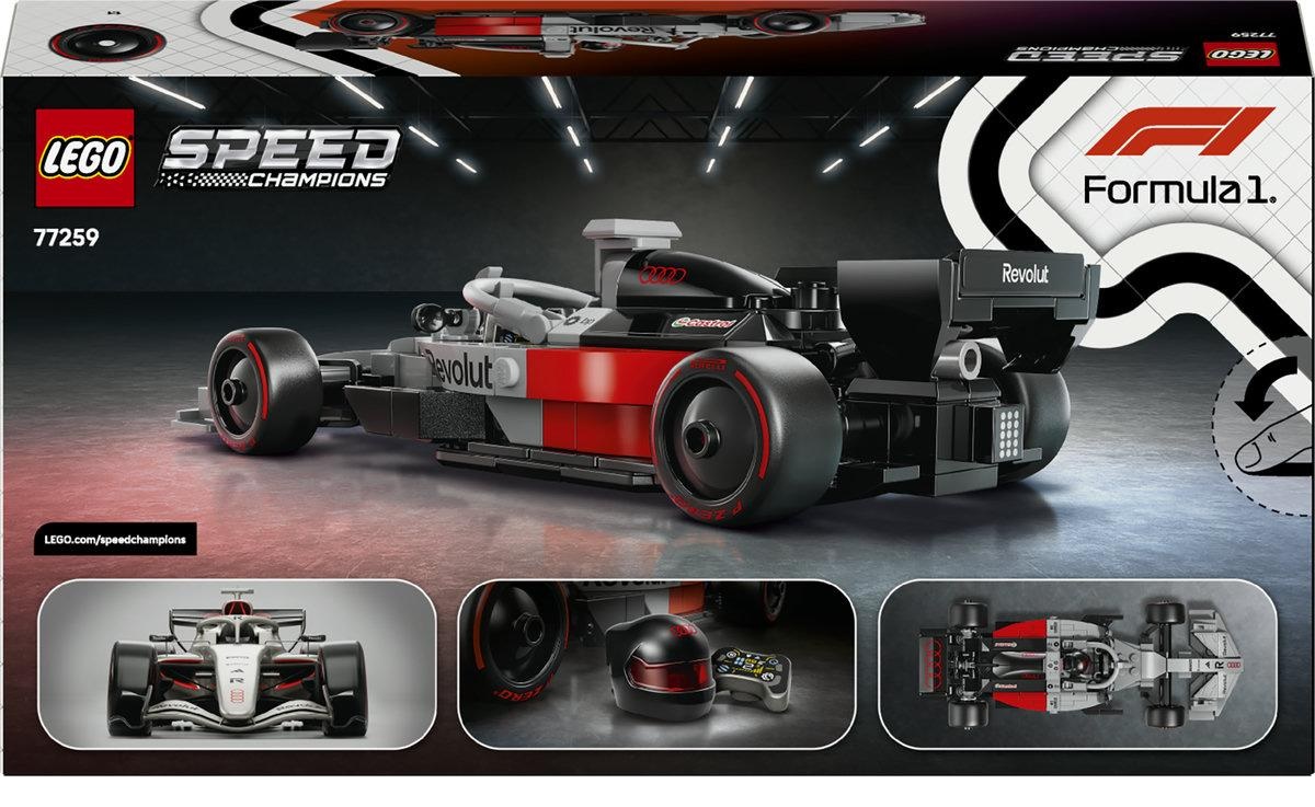 - Bolid Audi Revolut F1® Team — zestaw LEGO® Speed Champions Bolid Audi Revolut F1 Team R26 dla fanów motoryzacji w wieku od 10 lat do budowania, eksponowania i odgrywania wyścigów Formuły 1®