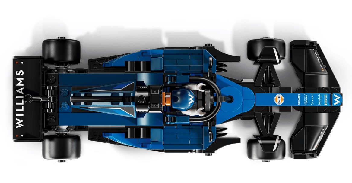 Model samochodu F1 ma kokpit otwierany przez podniesienie pałąka systemu halo, tylne skrzydło, zawieszenie typu wishbone, naklejki sponsorów i szersze tylne opony z napisem "Pirelli". Bolid F1 zawiera także minifigurkę kierowcy w kombinezonie zespołu Williams Racing i kasku, którą można umieścić w kokpicie.