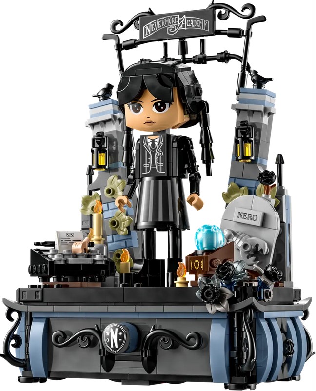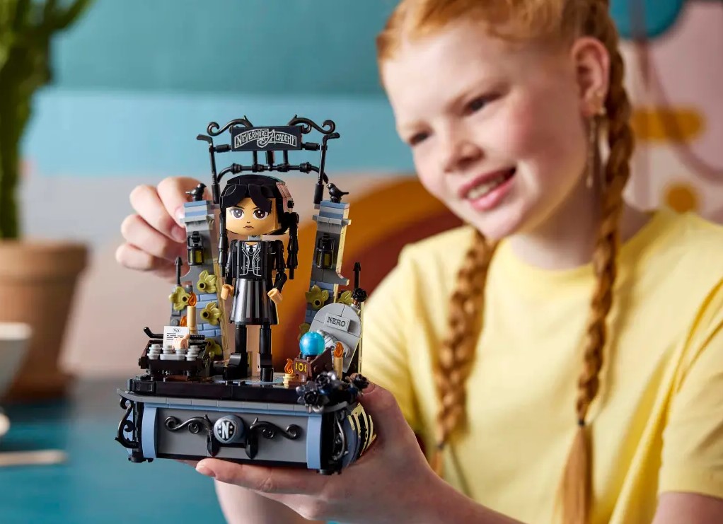 - Akademia Nevermore — fani serialu telewizyjnego w wieku od 10 lat mogą zbudować Wednesday w mundurku lub ubrać ją w sukienkę ze szkolnego balu, a następnie ustawić figurkę na podstawce