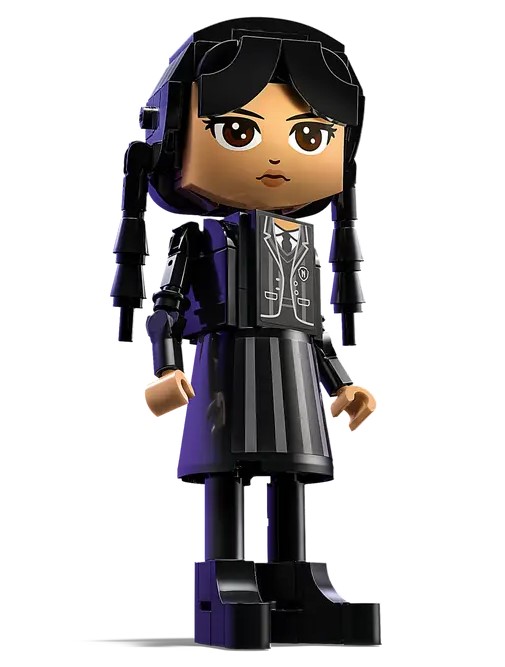 - Figurka Wednesday Addams — podaruj miłośnikom tajemnic figurkę Wednesday Addams, wzorowaną na tej postaci i serialu telewizyjnym. Ruchomy model zbudowany z klocków wyposażony jest w podstawkę ze schowkiem i inne elementy