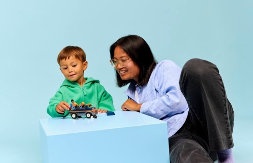 - Pomoc dla młodych konstruktorów — zawiera klocek startowy LEGO®, proste ilustrowane instrukcje oraz instrukcję cyfrową 3D w aplikacji LEGO Builder