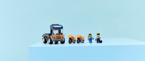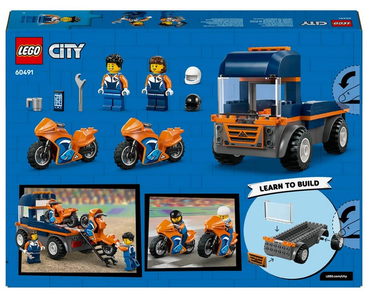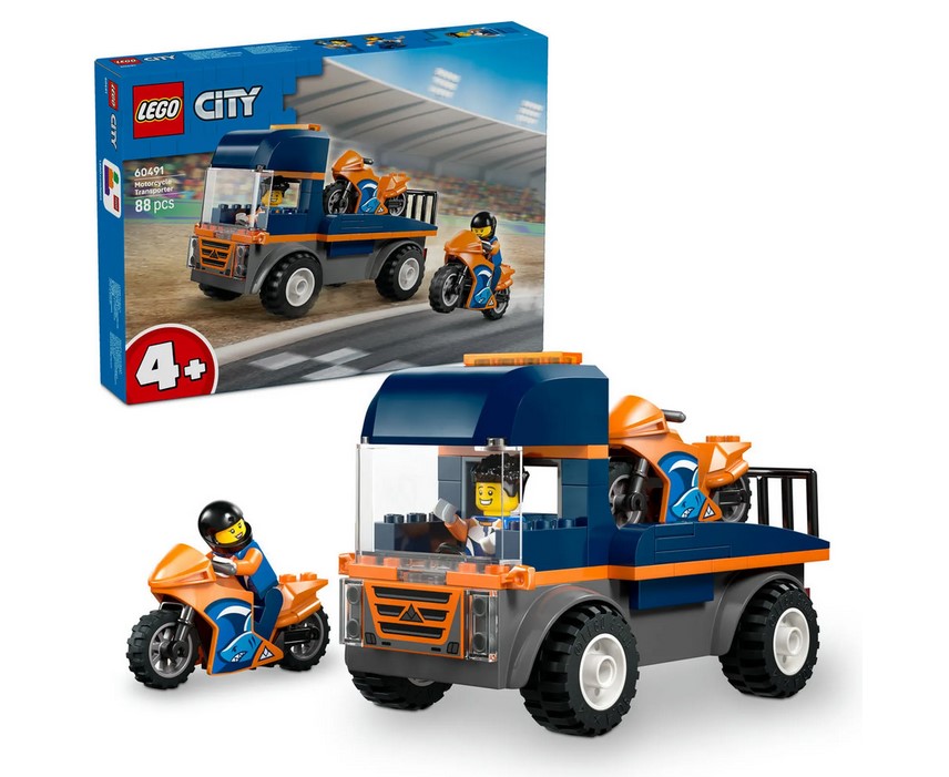 - Zestaw z pojazdami dla najmłodszych — zestaw LEGO® City Laweta dla motocykli (60491) to świetny pomysł na pierwszy zestaw dla dzieci w wieku od czterech lat, które uwielbiają modele ciężarówek i pojazdów wyścigowych