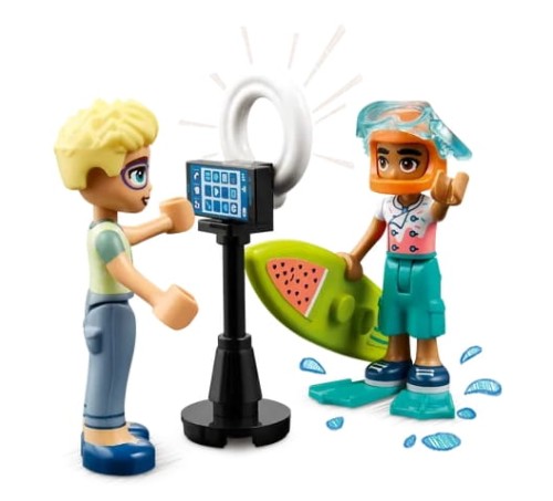 Zestaw zawiera wiele funkcji i akcesoriów inspirujących do odgrywania ról, w tym zabawkę dla kota, książkę kucharską i kamerę. Po skończonym nagrywaniu dzieci mogą otworzyć drzwi na balkon, tak by przyjaciele mogli podziwiać widok na morze z tej utrzymanej w plażowym klimacie sypialni.