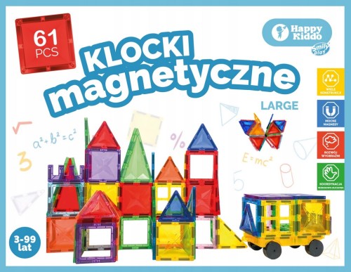 KLOCKI MAGNETYCZNE 61 ELEMENTÓW DO BUDOWANIA 3D 1-12 SP85382 HAPPY KIDDO