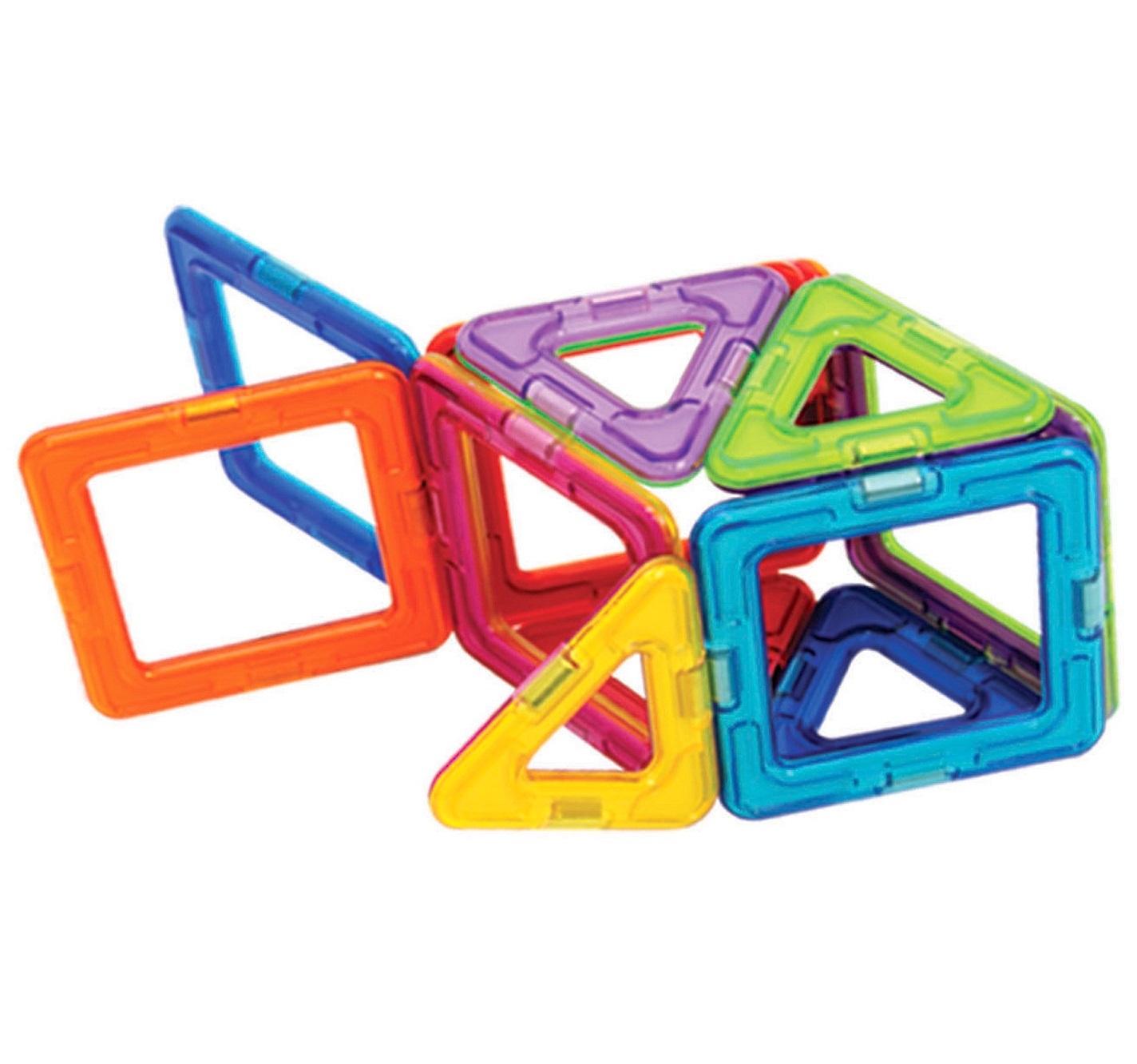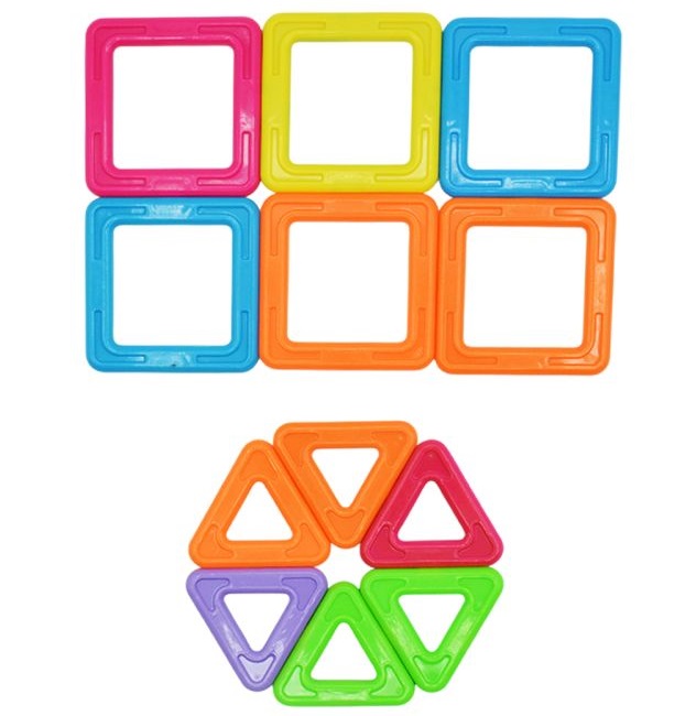 ☑️Fantastyczny zestaw składający się z 14 magnetycznych klocków, w których znajdują się trójkąty oraz kwadraty.