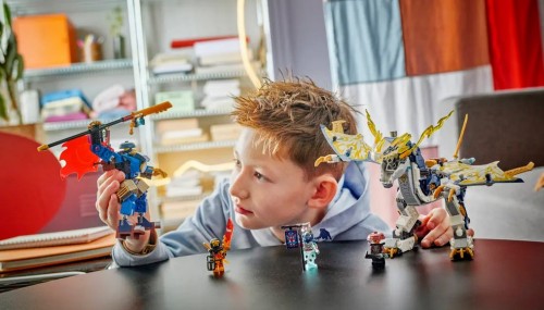 Dzieci mogą przymocować mechy z zestawów Burzowy jeździec-mech Kaia (71830) i Jeździec-Mech Kaia EVO (71783) (sprzedawane osobno) do tyłu figurki smoka z tego zestawu. Zestaw można zbudować za pomocą aplikacji LEGO® Builder, która poprowadzi Ciebie i Twoje dziecko przez przygodę z budowaniem. Zestaw zawiera 584 elementy.
