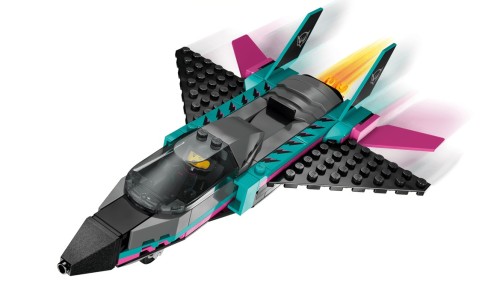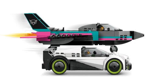 Ten podwójny zestaw LEGO City Odrzutowiec kontra samochód (60489) zawiera elegancki super samochód i naddźwiękowy odrzutowiec, które zapewnią mnóstwo frajdy podczas wyścigów. Zabawkowy odrzutowiec ma skośne skrzydła, podwójne pionowe stateczniki i stabilizatory. Dzieci mogą przesunąć dźwignię, aby włączyć dopalacze odrzutowca i otworzyć kokpit super samochodu, aby zajrzeć do szczegółowego wnętrza z fotelem wyścigowym. Wystarczy dodać minifigurki pilota i kierowcy, aby przeżyć wiele godzin epickiej akcji wyścigowej.