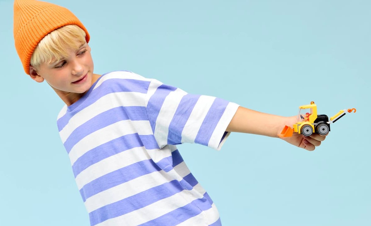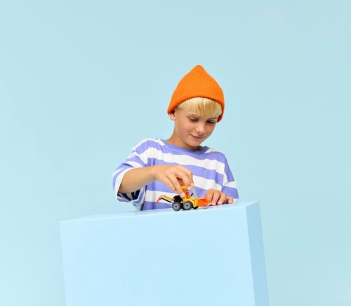 - Kreatywna zabawa — klasyczny pojazd z gumowymi oponami, kabiną kierowcy, łyżką ładowarki czołowej i koparką wyposażoną w hak inspirują do zabawy w odgrywanie ról