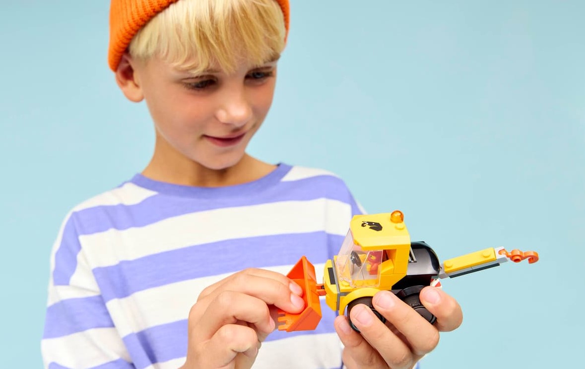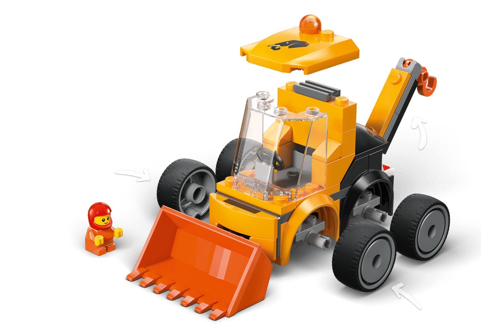 - Minifigurka małego pracownika budowlanego — dzieci mogą umieścić minifigurkę małego pracownika budowlanego w kabinie i wyruszyć na wielką przygodę