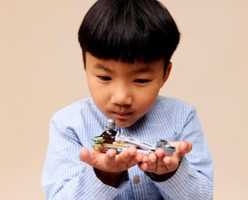 - Dwie postacie z Gwiezdnych Wojen — odgrywaj gwiezdne przygody z minifigurką LEGO® Mandalorianina, wyposażoną w blaster, który można przekształcić w karabin blasterowy, oraz z figurką LEGO Grogu