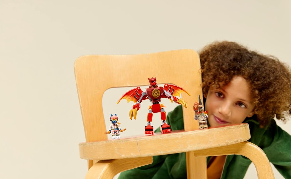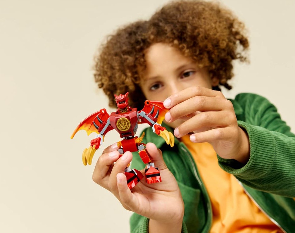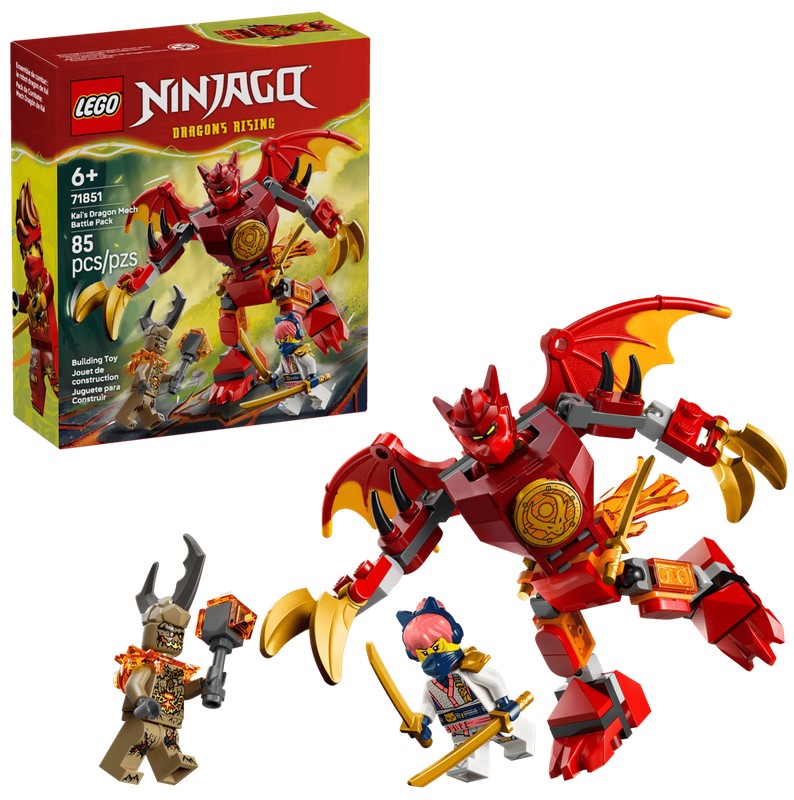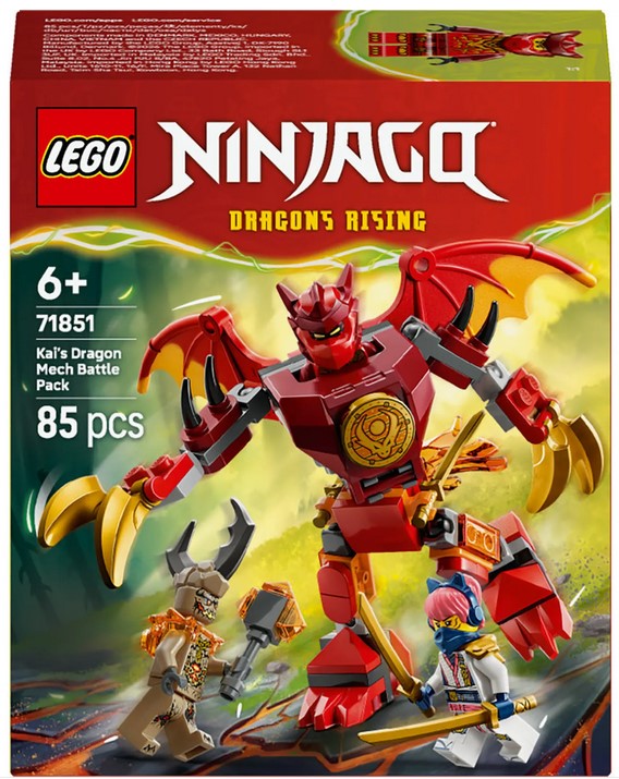 - Mech dla dzieci — zestaw konstrukcyjny Smok-mech Kaia — zestaw bitewny (71851) pozwala chłopcom i dziewczynkom w wieku od sześciu lat odgrywać sceny z czwartego sezonu serialu NINJAGO®: Powstanie Smoków