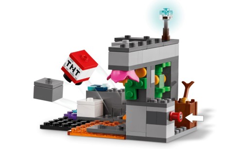 Ta wielofunkcyjna zabawka LEGO z bujną jaskinią pełną kolekcjonerskich diamentów i ametystów zawiera minifigurkę cichego łucznika, kurczaka i dużą figurkę strażnika z gry Minecraft z ruchomą głową, ramionami i nogami. Funkcje obejmują ręcznie wyzwalaną eksplozję TNT i spadający głaz. Całość uzupełniają akcesoria - przywracająca zdrowie złota marchewka i mikstura. Cyfrową zabawę zapewnia aplikacja LEGO Builder, w której dzieci mogą powiększać i obracać modele w 3D. Zestaw zawiera 238 elementów.