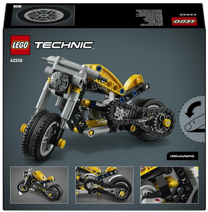 - Zestaw z modelem motocykla — zestaw konstrukcyjny LEGO® Technic Żółty motocykl (42225) zapewnia mnóstwo frajdy chłopcom i dziewczynkom w wieku od siedmiu lat, którzy uwielbiają zabawkowe pojazdy