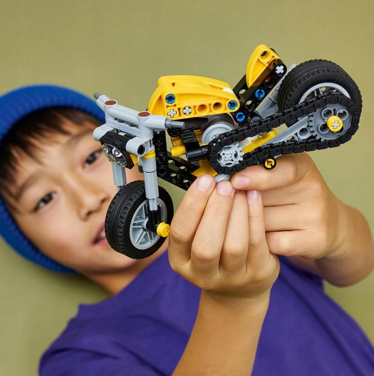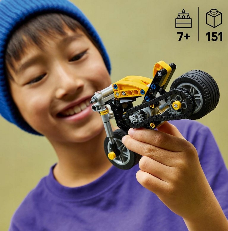 - Pomysł na prezent — ten motocykl LEGO® Technic to świetny pomysł na prezent urodzinowy lub upominek dla chłopców i dziewczynek w wieku od siedmiu lat