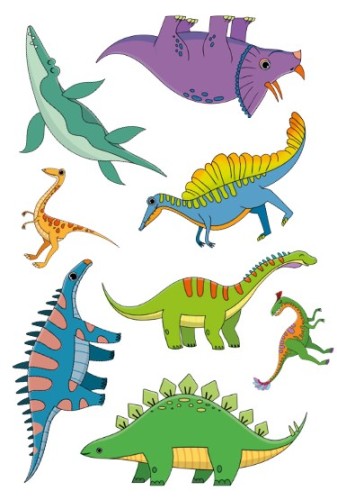 Zestaw Kolorowanka z tatuażami. Dinusie zawiera arkusz z kolorowymi, zmywalnymi tatuażami oraz strony z konturami prehistorycznych gadów do samodzielnego wypełnienia barwami. Publikacja łączy klasyczną zabawę manualną z elementem stylizacji, pozwalając dziecku poczuć się jak profesjonalny projektant w domowym studiu tatuażu. Wzory tatuaży odpowiadają motywom graficznym zawartym w książeczce, co pozwala na tworzenie spójnych kompozycji na papierze i skórze. To rozwiązanie angażuje wyobraźnię małych fanów paleontologii i zachęca do kreatywnego spędzania czasu.