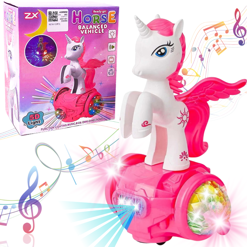 KONIK JEDNOROŻEC NA BATERIE INTERAKTYWNY ŚWIATŁO DŹWIĘK ŚWIATŁA 5D