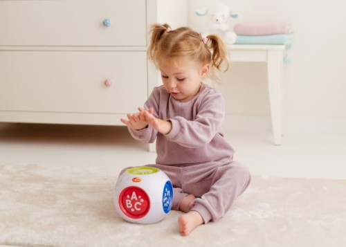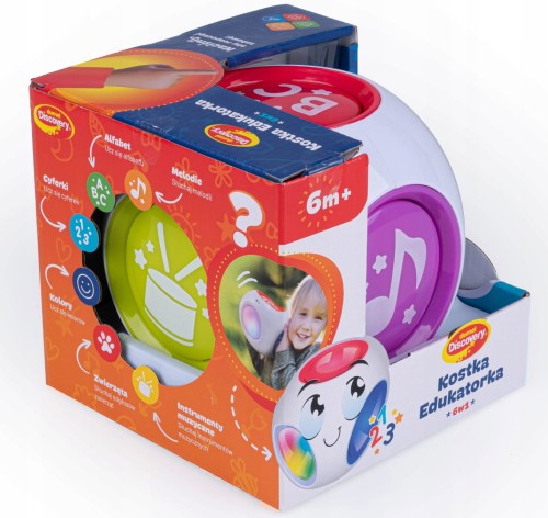 Edukacyjna, dotykowa kostka pełna dźwięków i kolorów zabawi na 6 różnych sposobów!