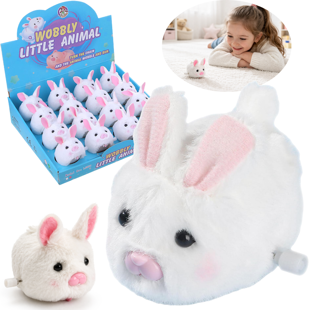 ✨Wesoły, nakręcany króliczek to mała, kolorowa zabawka, która po nakręceniu jeździ po podłożu