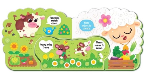 Każda mamusia chce mieć blisko swoje dziecko. Tak samo jest w świecie zwierząt. Pomożesz zwierzakom na wsi odnaleźć młode? Dwie książeczki w jednej – duża i mała – a w nich prosta zabawa w szukanie i dopasowywanie par zwierząt – mam i ich potomstwa. Kogo szuka mama owca? Kto zginął mamie krowie? Czyją mamą jest klacz? Czyimi dziećmi są prosięta? Kto lubi jeść trawę? Kogo cieszą harce w błocie? Książeczka poszerza wiedzę o zwierzętach wiejskich i ćwiczy sprawność manualną maluchów.