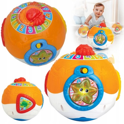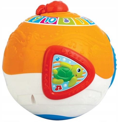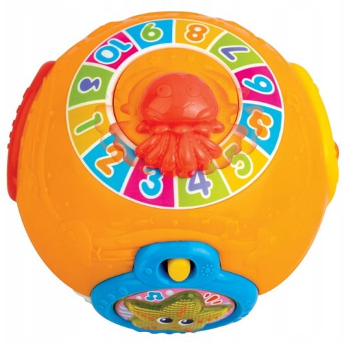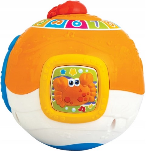 Piłeczka -ocean kołysze się na boki i chybocze, zachęcając dziecko do złapania jej i pełzania za nią. Na kuli znajduje się obracająca się meduza i przyciski w postaci kraba , morskiego żółwia i świecącej rozgwiazdy.