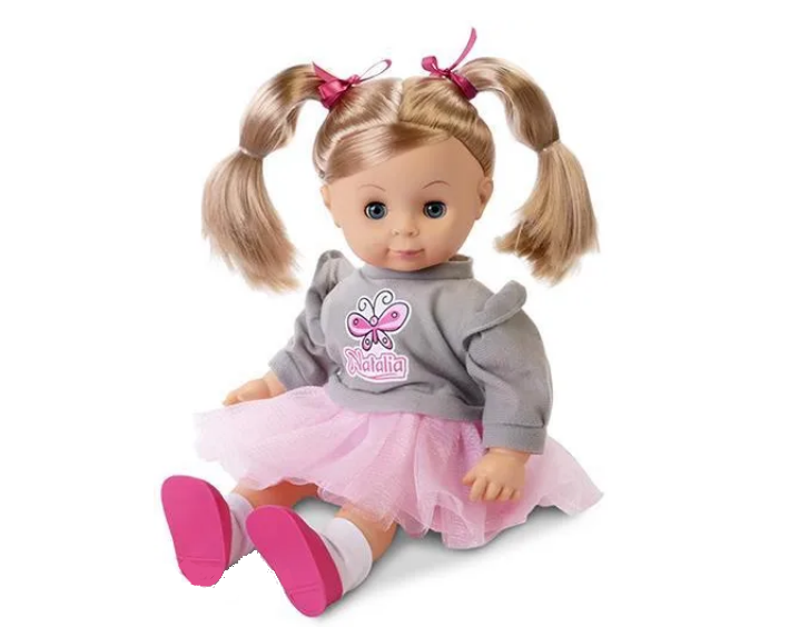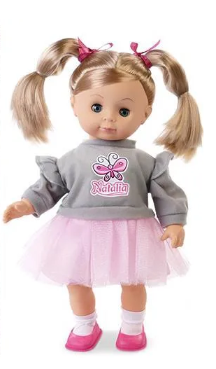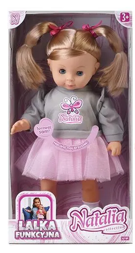 Natalia mówi po polsku, a aby usłyszeć co ma do powiedzenia wystarczy nacisnąć jej brzuszek. Natalia zaprasza Cię na spacer i lubi, kiedy się z nią bawisz. Jej miękki materiał i urocze warkocze sprawiają, że lalka jest niezwykle atrakcyjna.